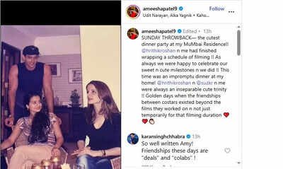 In the photo, the trio is seen enjoying drinks, with Hrithik casually leaning on the chair where Ameesha is seated. Her caption read, ‘SUNDAY THROWBACK— the cutest dinner party at my MuMbai Residence!! @hrithikroshan n me had finished wrapping a schedule of filming !! As always we were happy to celebrate our sweet n cute milestones n we did !! This time was an impromptu dinner at my home! @hrithikroshan n @suzkr n me were always an inseparable cute trinity !! Golden days when the friendships between costars existed beyond the films they worked on n not just temporarily for that filming duration.‘
